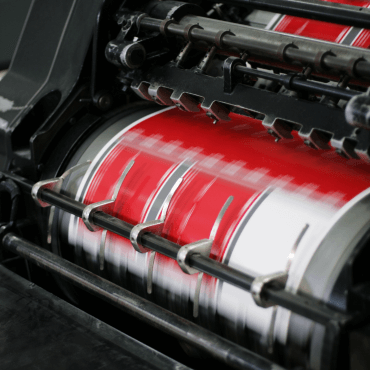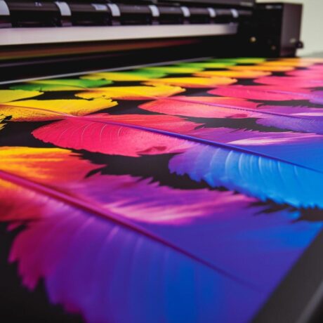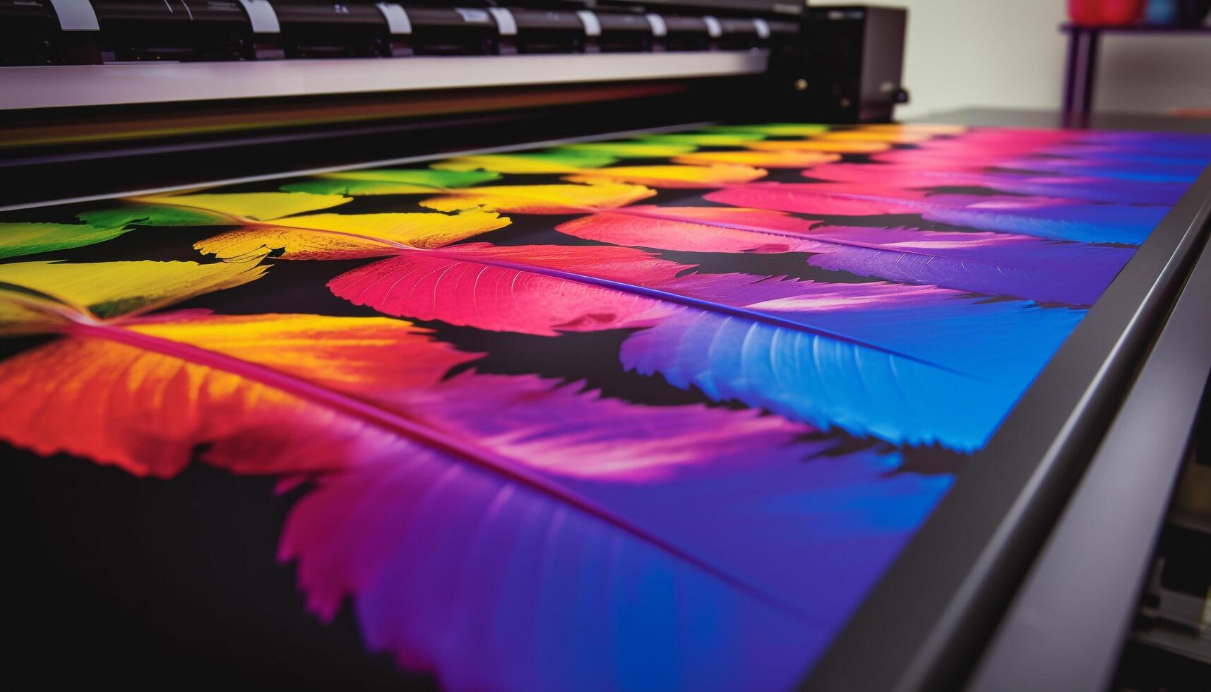 Vinyl printing is a process of printing designs onto vinyl material, commonly used for signs, banners and decals.